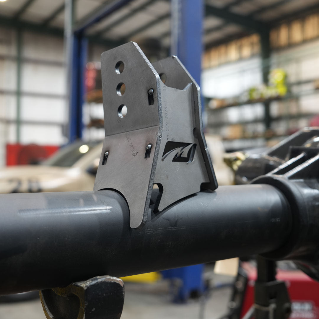 Designed to fit a 4 inch axle tube, the bracket offers a 2 5/8 inch inside width with a 9/16 inch bolt hole, ready to pair with common rod ends or flex joints used in high-performance suspension systems. The multiple mounting holes allows for fine-tuning link vertical separation (1 inch spacing), ensuring your suspension cycles smoothly while maintaining proper pinion and driveshaft alignment on the trail.