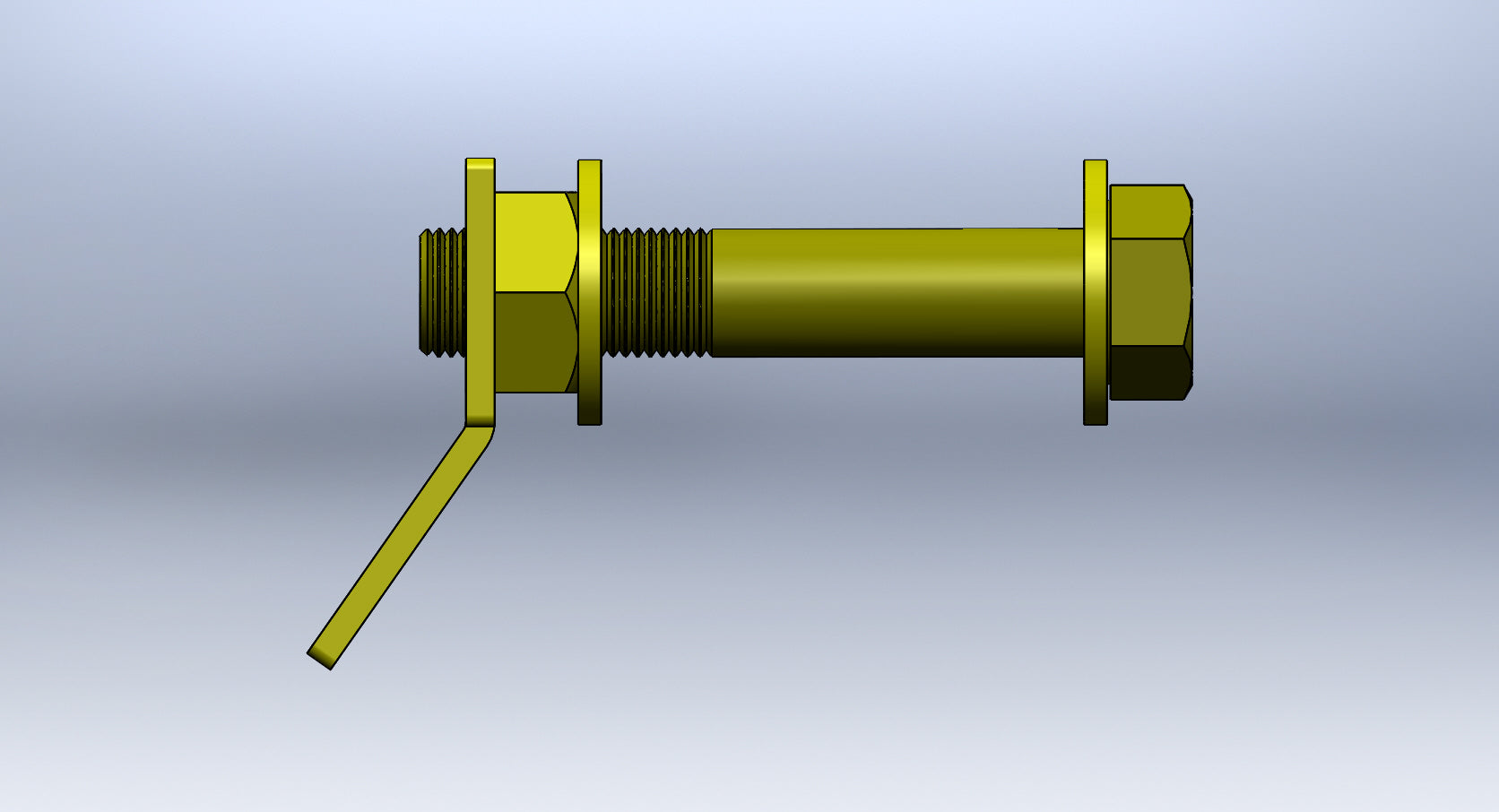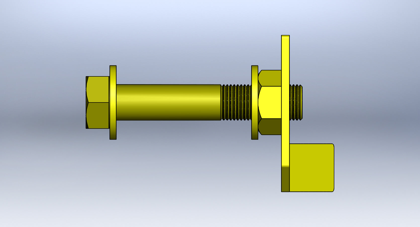 9/16-18 x 3 Inch Grade 8 bolt, 2 washers and then all metal lock nut come welded to the 1/8 flange. Approximate torque spec = 146 ft-lbs