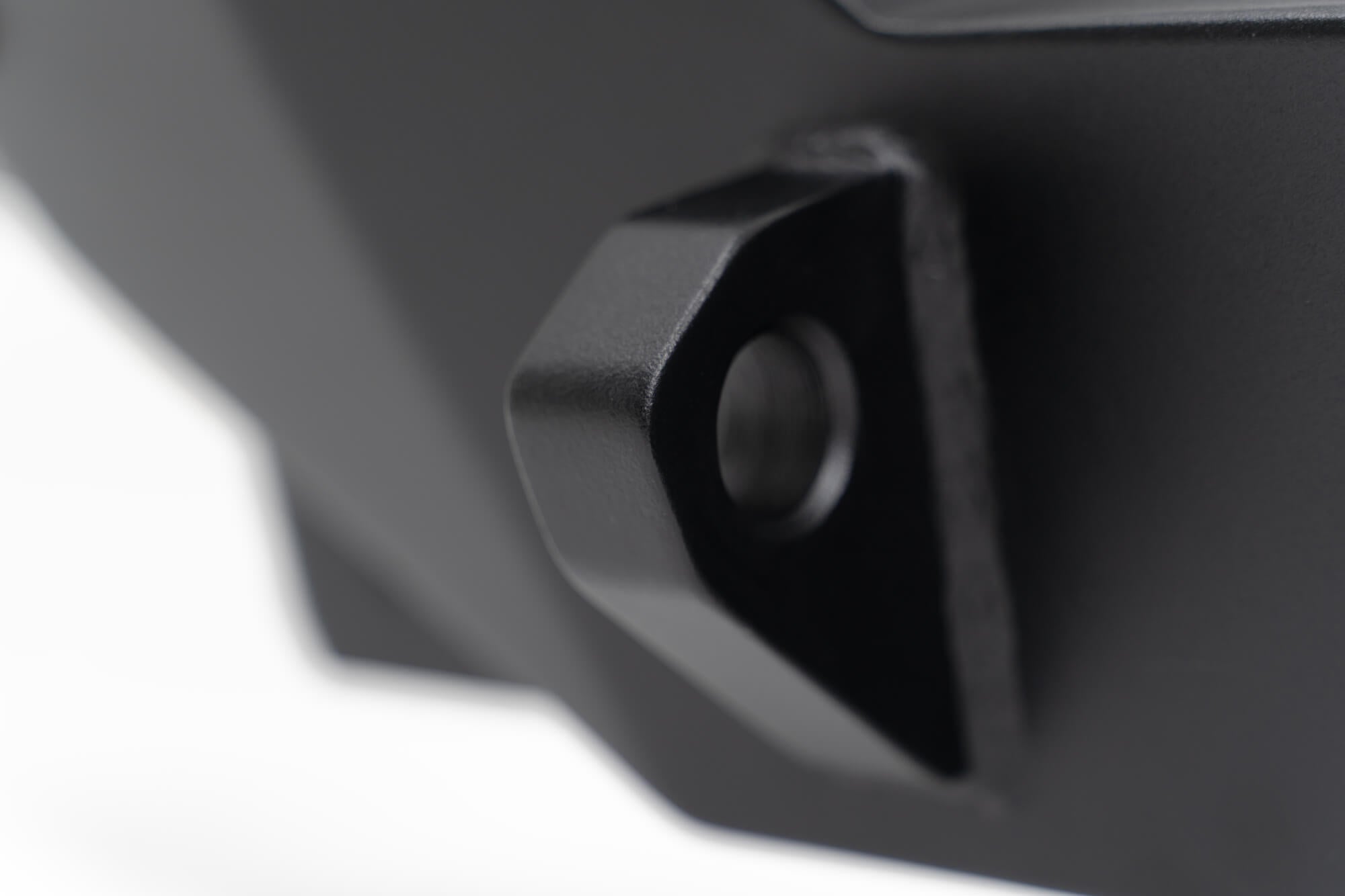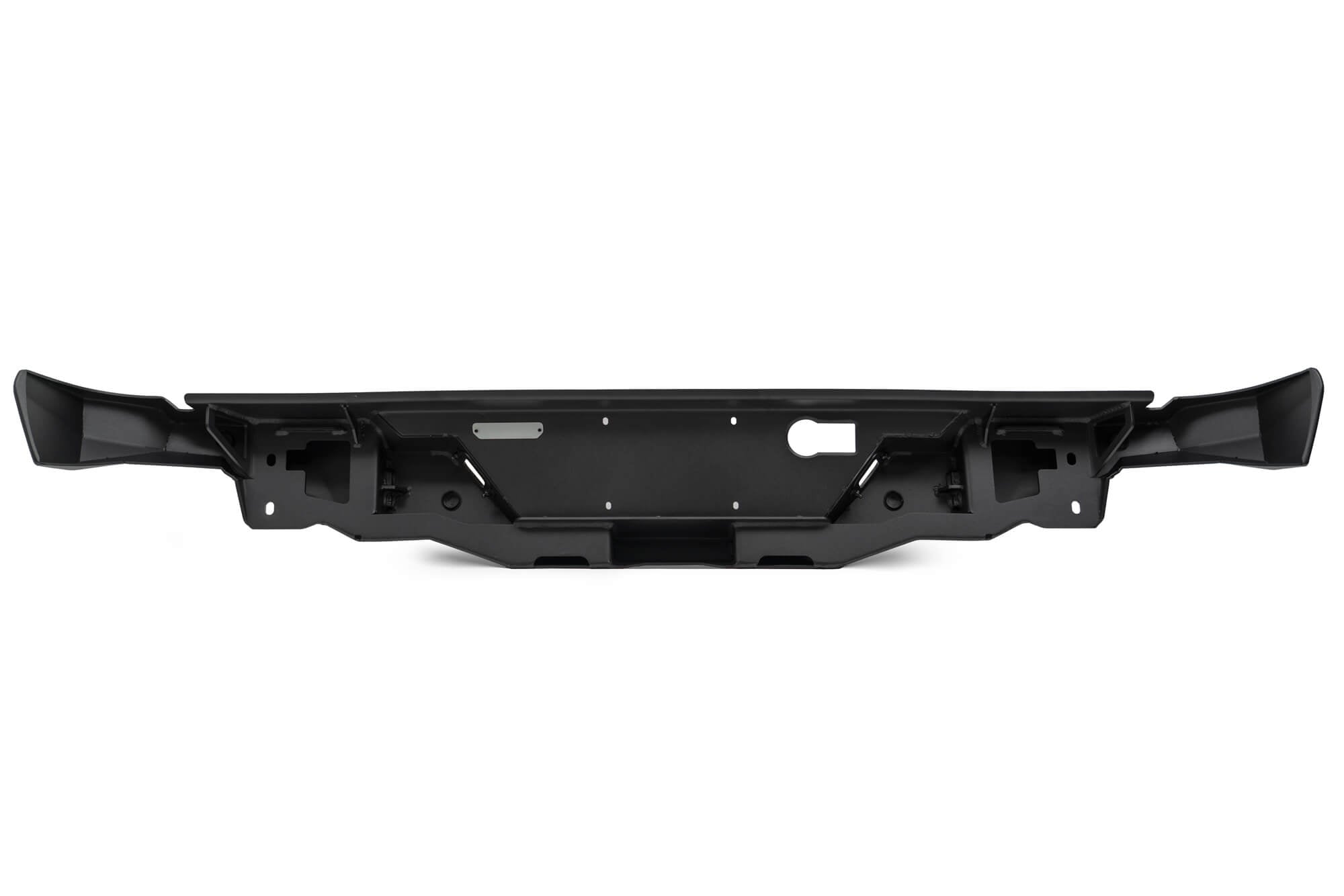 Our FS-15 Series Rear Bumper is designed for off-road use and rock crawling. It has a low-profile design for better clearance and departure angles. It retains factory features like the hitch, trailer harness, connector, license plate lights, and parking sensor cutouts (we recommend using our Mopar Sensor Bezels for installation). The bumper also includes tabs for tidy wire management. For recovery, it has 1-inch thick mounts for ?-inch D-ring shackles with ?-inch pins. It's finished in a durable black powder coat for protection. Installation is a simple bolt-on process that requires two people.
