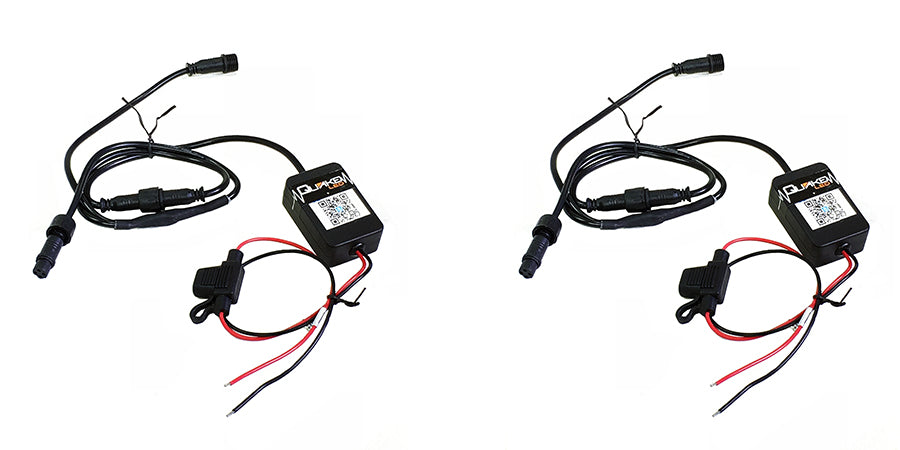 Quake LED's dual RGB bluetooth controllers for all RGB Accent Lights (not HD RGB). Plug and play 17 key remote control for Quake LED RGB Whip Light by Android or iPhone App. Color, Music, Timer and DIY options |