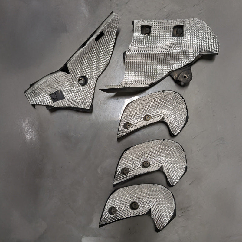 Increased riding comfort while maintaining the stock look. Heat from the exhaust system can become uncomfortable, especially riding in slow traffic. This issue really comes into focus for those with shorter legs. Not wanting to disrupt the attractive lines and appearance of the exhaust, DEI's Heat Shield Liner Kit insulates the outer heat shield, without disturbing the looks of the bike. Each piece is precision cut to fit in-between the exhaust pipe and the heat shield, blocking heat transfer and lowering the surface temperatures of the outer shield. Easy to install, with no permanent modifications needed. The Heat Shield Liners are dual layer constructed of Aluminum and our proprietary Dura 2000(TM) insulating material and offer over a 60% reduction in heat. Features CNC cut for a perfect fit Completely hidden when installed Advantages Durable long-lasting materials Simple installation No smoke or odor Benefits Reduces heat radiating from the exhaust system, giving the rider and passenger a cooler ride. This is especially noticeable when the rider stops and puts their feet on the ground. Note: Heat Shield Liners install inside the head pipe heat shields. Please pay attention to what brand head pipe you are running not the brand of the mufflers. Kits are compatible with black or chrome head pipes.