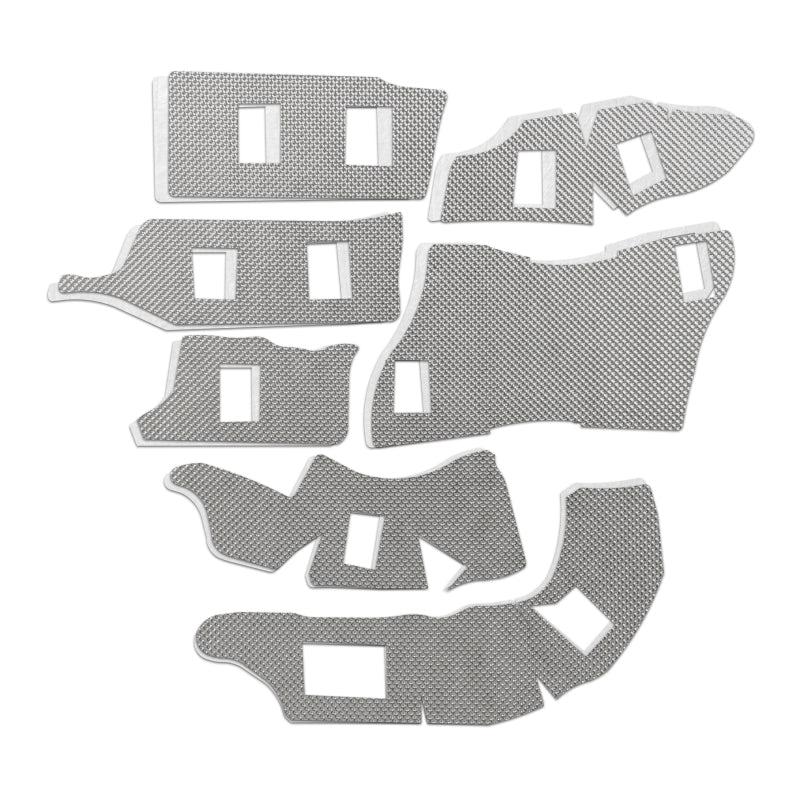 Increased riding comfort while maintaining the stock look. Heat from the exhaust system can become uncomfortable, especially riding in slow traffic. This issue really comes into focus for those with shorter legs. Not wanting to disrupt the attractive lines and appearance of the exhaust, DEI's Heat Shield Liner Kit insulates the outer heat shield, without disturbing the looks of the bike. Each piece is precision cut to fit in-between the exhaust pipe and the heat shield, blocking heat transfer and lowering the surface temperatures of the outer shield. Easy to install, with no permanent modifications needed. The Heat Shield Liners are dual layer constructed of Aluminum and our proprietary Dura 2000(TM) insulating material and offer over a 60% reduction in heat. Features CNC cut for a perfect fit Completely hidden when installed Advantages Durable long-lasting materials Simple installation No smoke or odor Benefits Reduces heat radiating from the exhaust system, giving the rider and passenger a cooler ride. This is especially noticeable when the rider stops and puts their feet on the ground. Note: Heat Shield Liners install inside the head pipe heat shields. Please pay attention to what brand head pipe you are running not the brand of the mufflers. Kits are compatible with black or chrome head pipes.