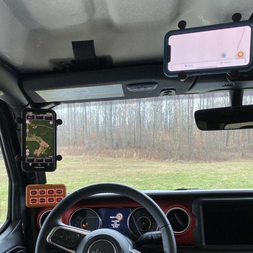 RAM Mount X-Grip has a clean and clever four leg design that sports great holding power without hiding your phone. This will the most useful accessory in your Jeep. Double socket arm has a socket at both ends that accommodates B Size 1" balls. RAM's socket technology allows for almost infinite adjustment to achieve the perfect viewing angle.