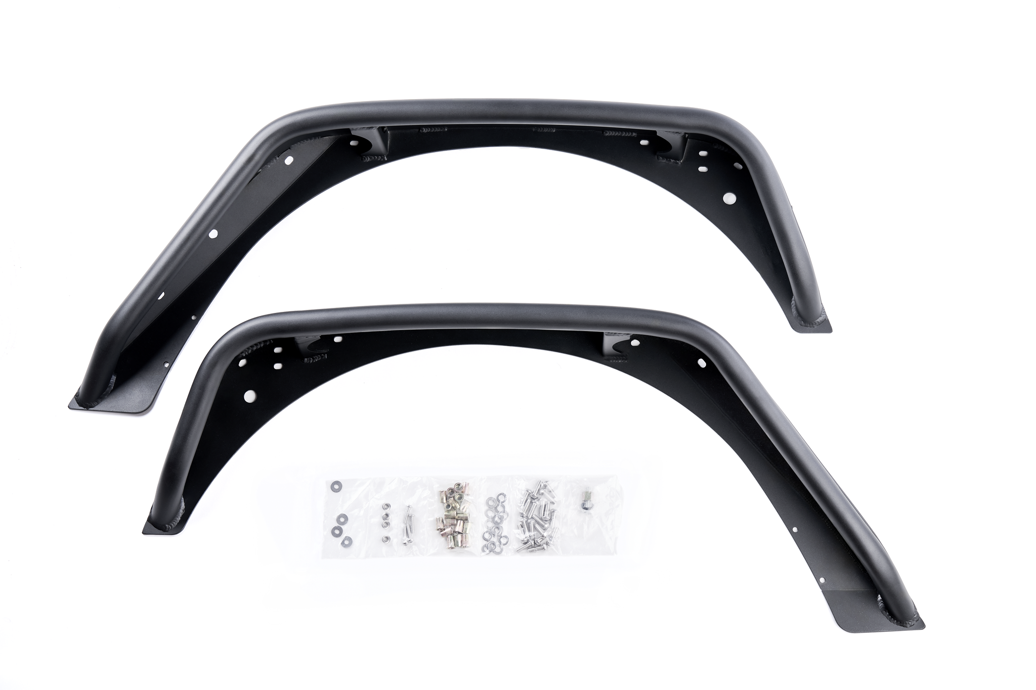 For the 2007-2018 Jeep Wrangler JK/JKU, our Combat Full Assault Fenders are exactly what you need - strong, functional, stylish. The 6063 aluminum construction is tough and corrosion-resistant with the thickest tube wall and top plate on the market. They provide the extra clearance you need for bigger tires and more flex while the narrower profile lets you navigate the trails more easily. Available in black high UV load powder coat, the Full Assault Fenders also come equipped with stainless steel hardware and a removable, customizable logo. This product is covered by the Combat Lifetime Guarantee.