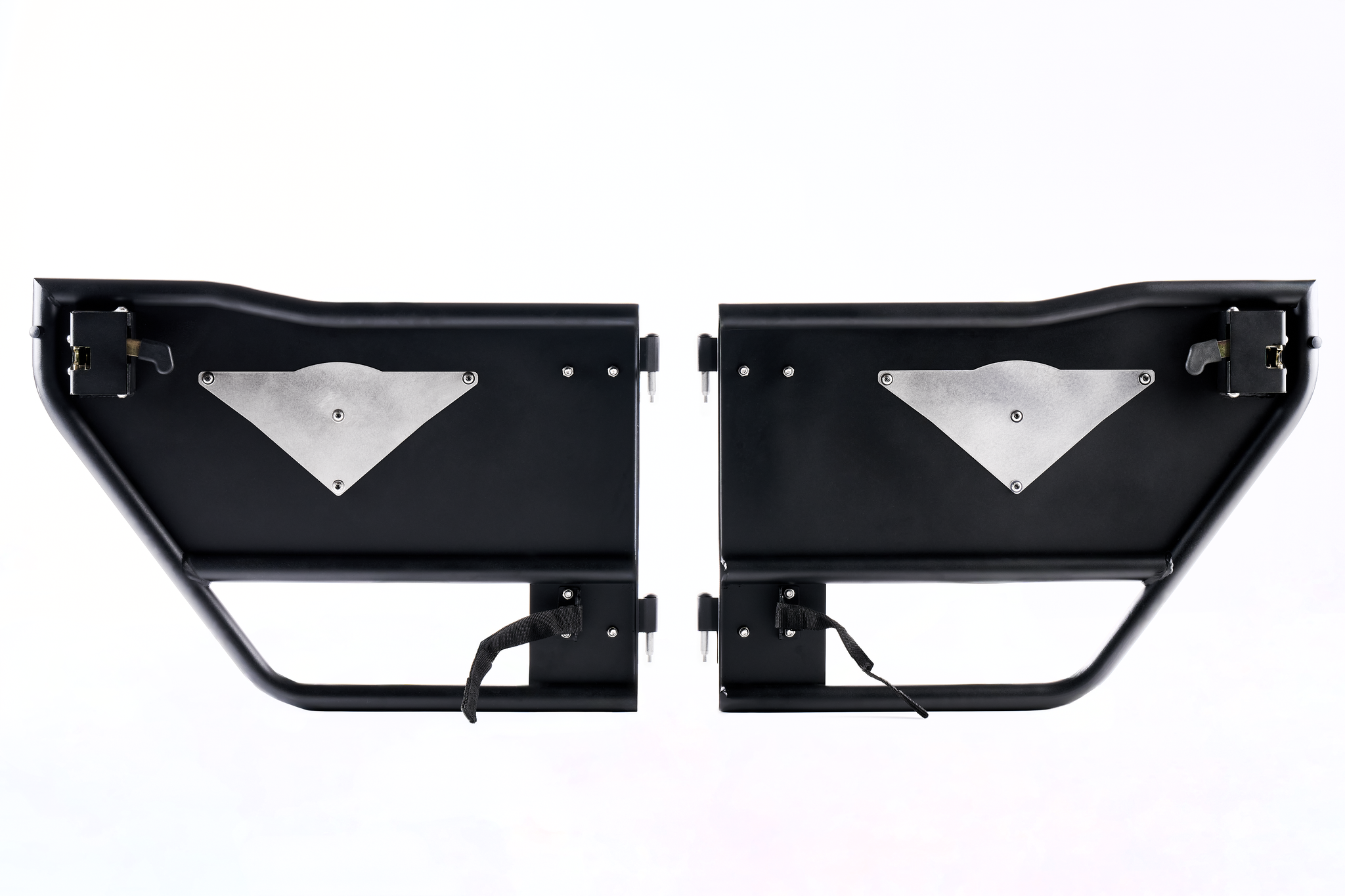 Created for the 2007-2018 Jeep Wrangler JK/JKU, our Mission Tube Doors are perfect for enjoying the summer weather or a high-intensity excursion in a warm climate. The 1.3" high UV load black powder-coated tubing is strong without being too bulky. All the necessary equipment is included - OE-style hinges and door limiting straps - so you can hit the ground running without having to look for extras. Easy to install and including stainless steel hardware, the logo-backing is removable so you can customize the color to match your ride. This product is covered by the Combat Lifetime Guarantee.