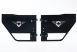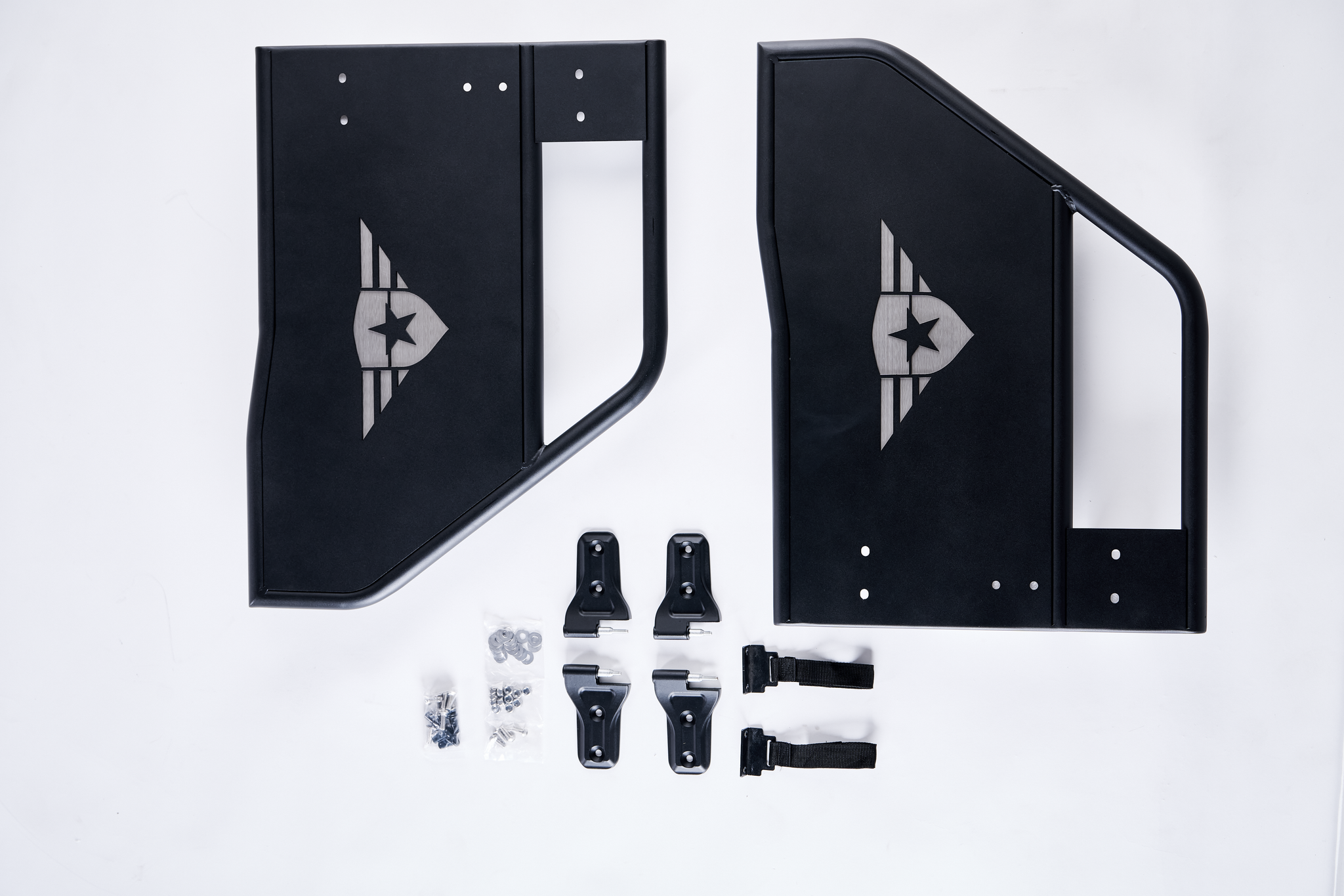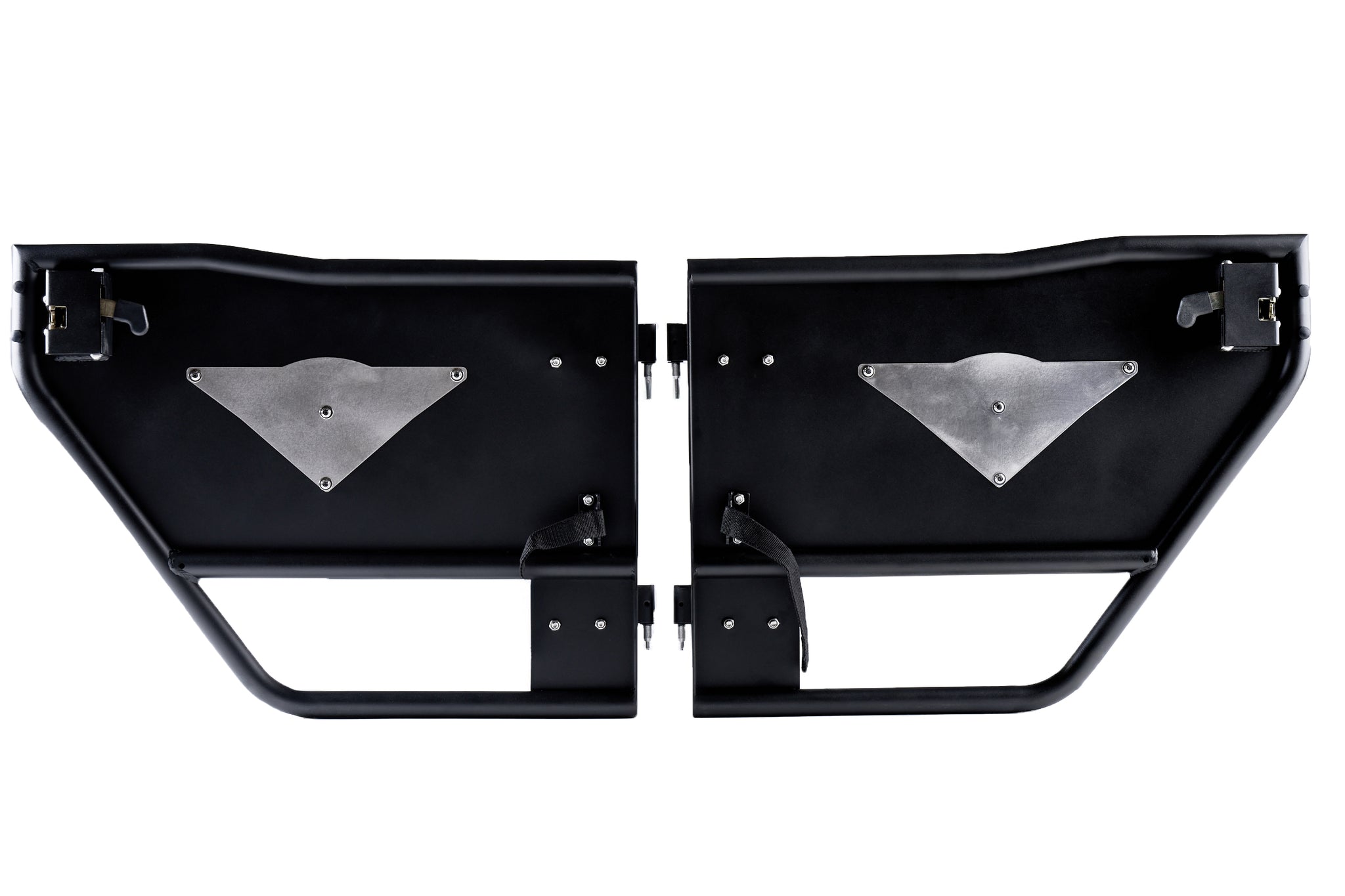 Created for the 2018+ Jeep JL/JLU, our Mission Tube Doors are perfect for enjoying the summer weather or a high-intensity excursion in a warm climate. The 1.3" high UV load black powder-coated tubing is strong without being too bulky. All the necessary equipment is included - OE-style hinges and door limiting straps - so you can hit the ground running without having to look for extras. Easy to install and including stainless steel hardware, the logo-backing is removable so you can customize the color to match your ride. This product is covered by the Combat Lifetime Guarantee.