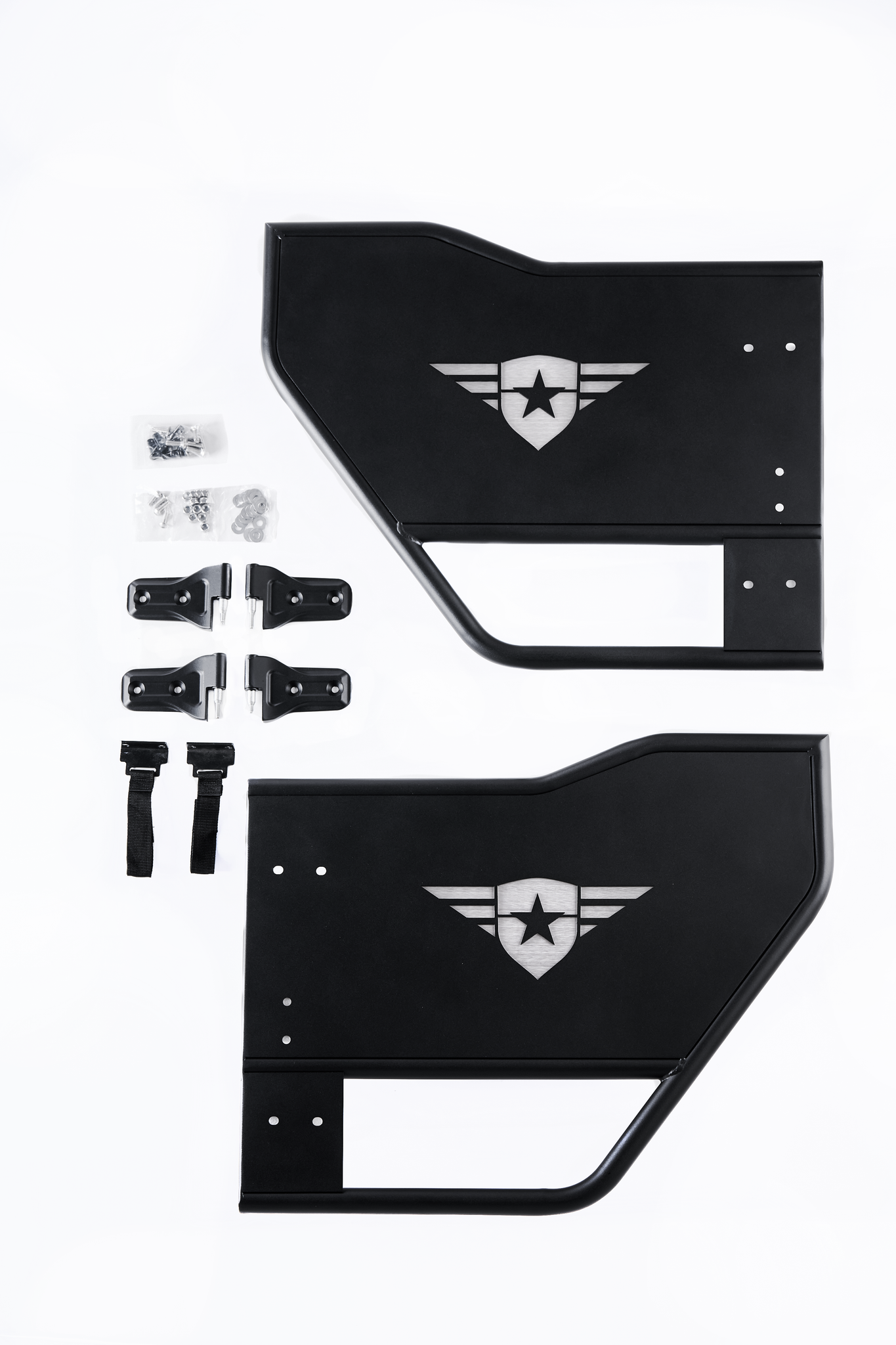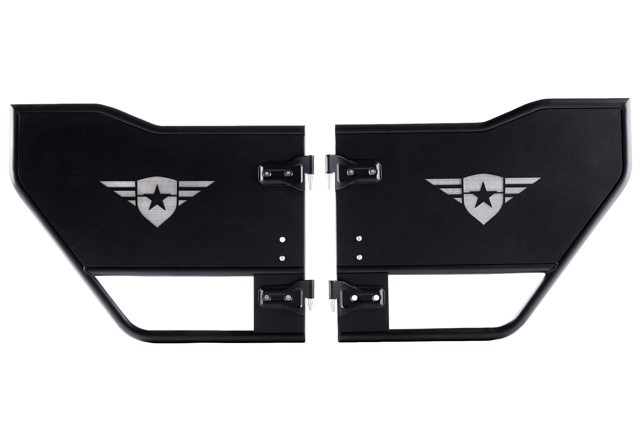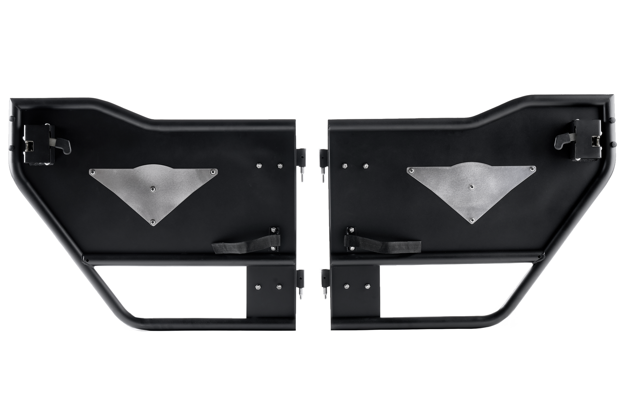 Created for the 2020+ Jeep JK Gladiator, our Mission Tube Doors are perfect for enjoying the summer weather or a high-intensity excursion in a warm climate. The 1.3" high UV load black powder-coated tubing is strong without being too bulky. All the necessary equipment is included - OE-style hinges and door limiting straps - so you can hit the ground running without having to look for extras. Easy to install and including stainless steel hardware, the logo-backing is removable so you can customize the color to match your ride. This product is covered by the Combat Lifetime Guarantee.