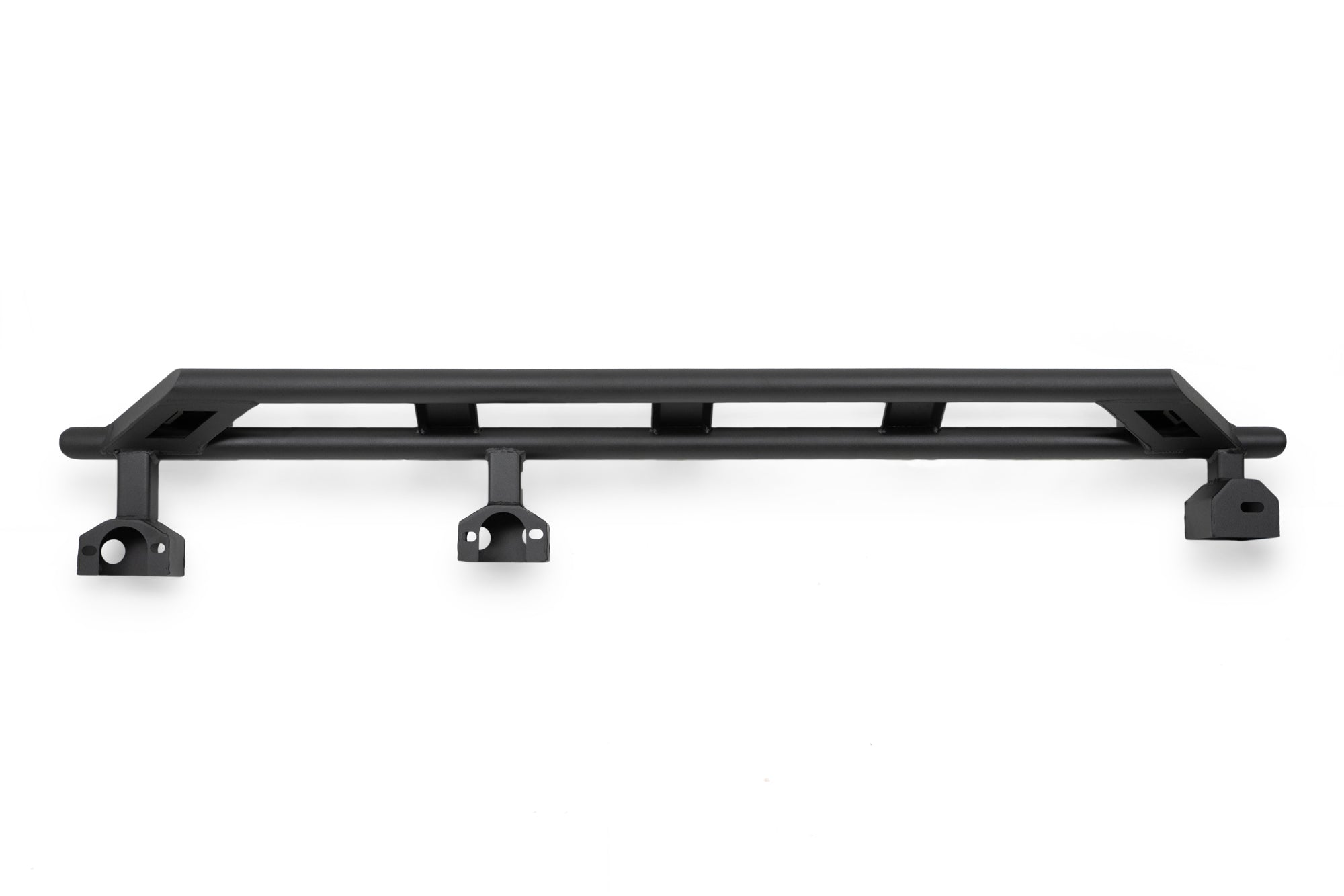 Our FS-15 Series Jeep Wrangler Rock Sliders protect your side body panels when traversing rocky terrain. The low-profile fitment provides protection without compromising ground clearance. The sliders mount directly to the frame at 3 points, maintaining rigidity and strength. The 4mm walled tubing provides the structured armor you need to get up and over rocky obstacles. These sliders are finished with a micro-texture black powder coat. Installation is quick and easy and utilizes factory hardware.