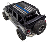 The SW1 JK-4D Tactical Flag Distressed Thin Blue Line is the top choice for Jeep owners world-wide who are looking for a one-piece top to cover front and back seat riders.