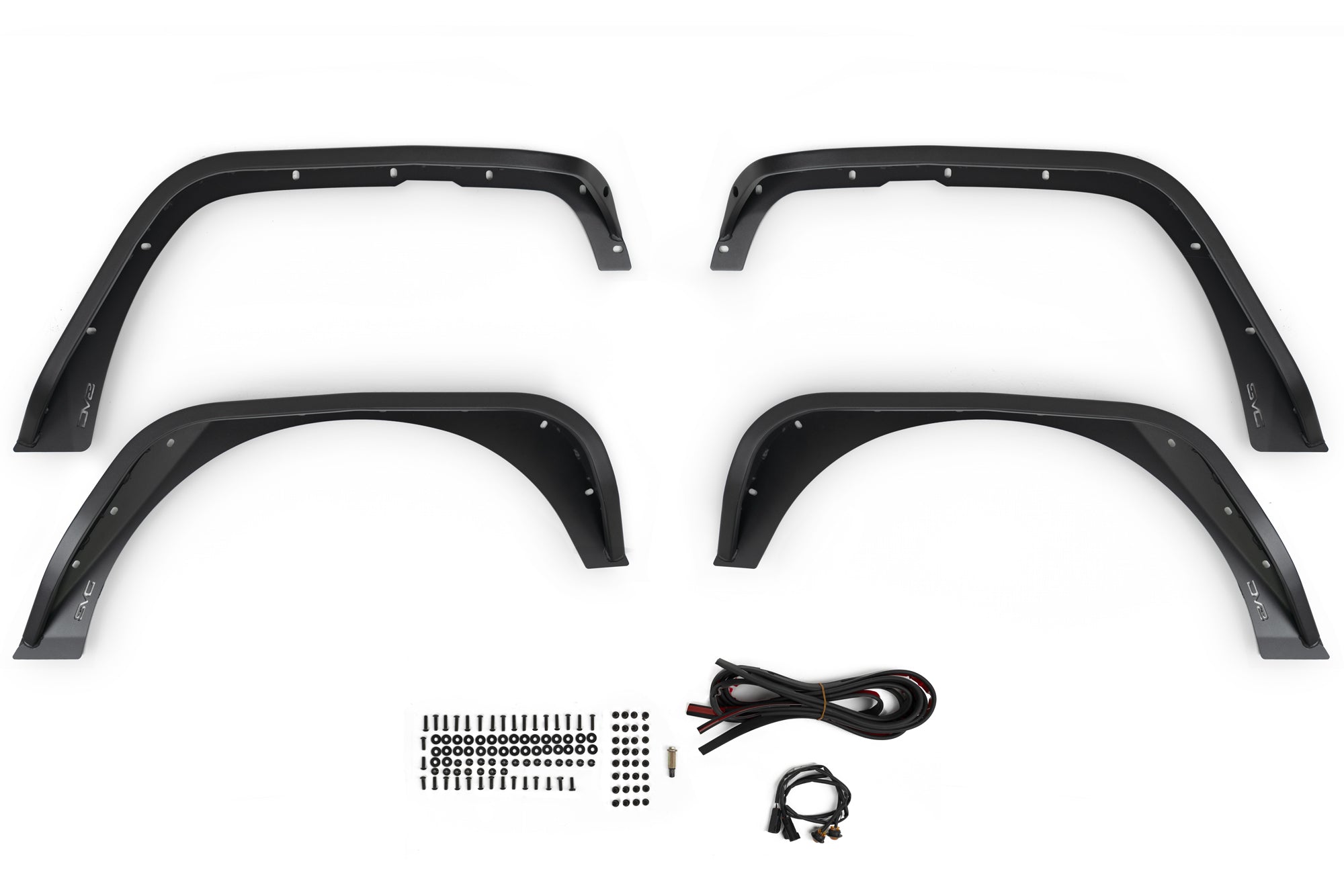Our Slim Fender Flares for the Jeep Wrangler JK were designed for a sleek and aggressive off-road style. Their slim width enables you to fit in tighter spaces on the trail. Their full steel structure provides extra protection and their slim profile offers improved articulation when off-road. The fenders include a rubber seal to protect the body panels and prevent the buildup of dust or small pebbles. The front fenders feature a plug and play amber turn signal. A micro-texture black powder coat protects the fenders from the elements. Installation is fully bolt-on, but there is an optional cut & paint that can be done for the cleanest look.