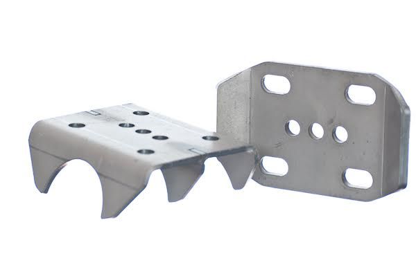 The Motobilt u-bolt eliminator kit allows you to replace the 4 factory u-bolts with conventional bolts. The u-bolt eliminator kit was designed for serious rock crawlers that want the ultimate clearance underneath their vehicle. The kit is designed to work with 2.5 inch wide leaf springs found on vehicles like the Jeep YJ, XJ, and more. The u-bolt eliminator kit has 3 leaf center pin locations in the spring perch and top bolt plate which allows you to move the axle forward or reward in 1 inch increments. The top plate is made of 3/8 inch thick high strength steel plate bent on the ends for increased structural rigidity and eliminate sharp edges on the leaf spring. The 1/4 inch thick high strength steel plate spring perch has 3 sections to weld to your axle for superior strength. The Motobilt u-bolt eliminator kit is designed for axles with a tube diameter of 3.25 inch-3.5 inch which fits well with the GM 14 bolt, Dana 70, and Sterling rear axles. Hardware not included as the thickness of leaf spring packs will vary depending on each setup. This kit is intended to be used with 5/8 inch grade 8 bolts and nylock nuts.The kit is shipped with two fabricated lower spring perches and two upper bolt plates.